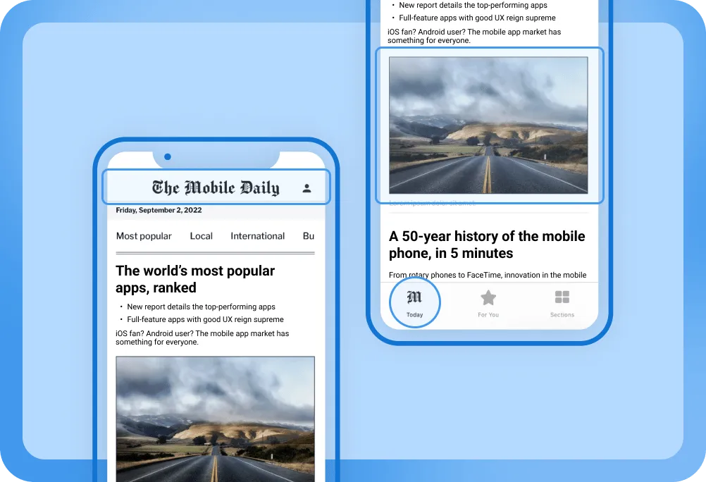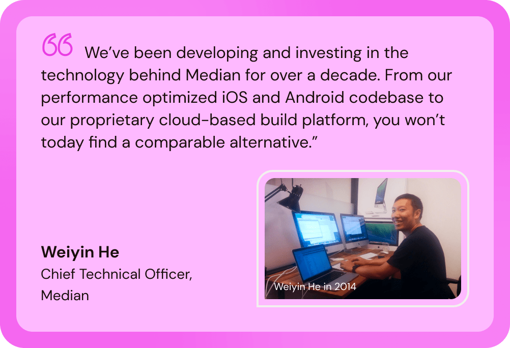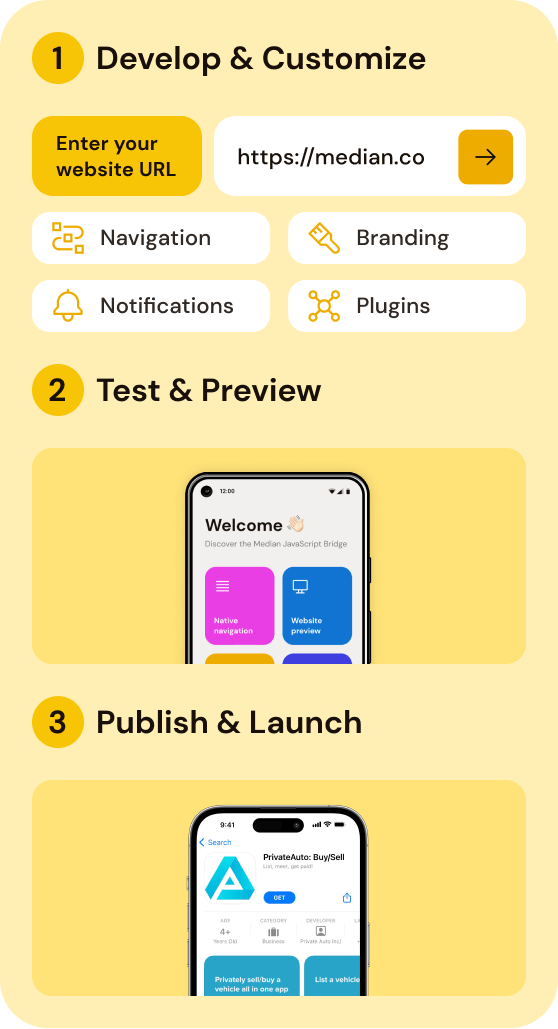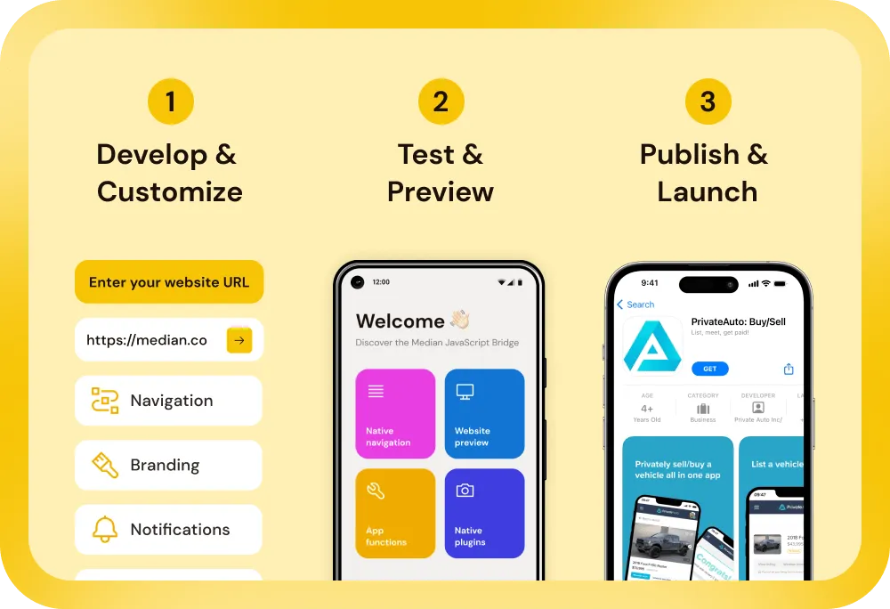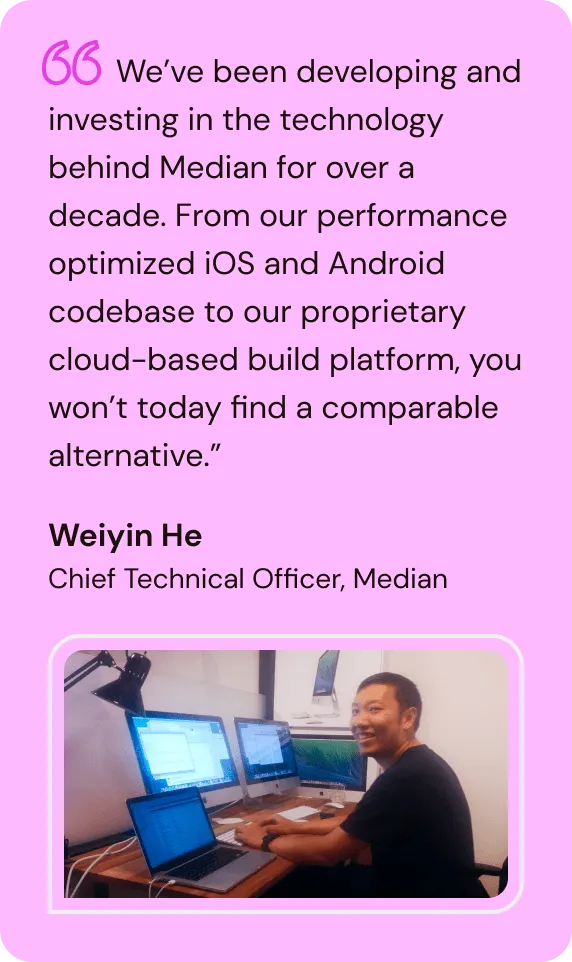 Most websites will display within apps created using Median automatically. To build highly immersive native apps as a web developer use the Median JavaScript Bridge to add a range of native functionality